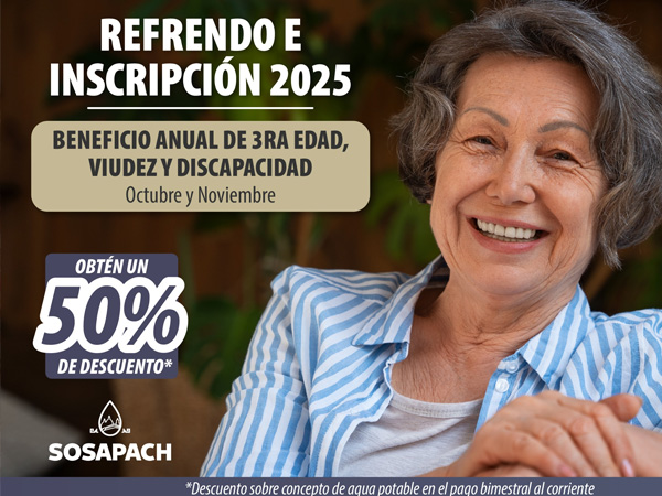 50% de descuento en el pago de sus servicios de agua potable, drenaje y