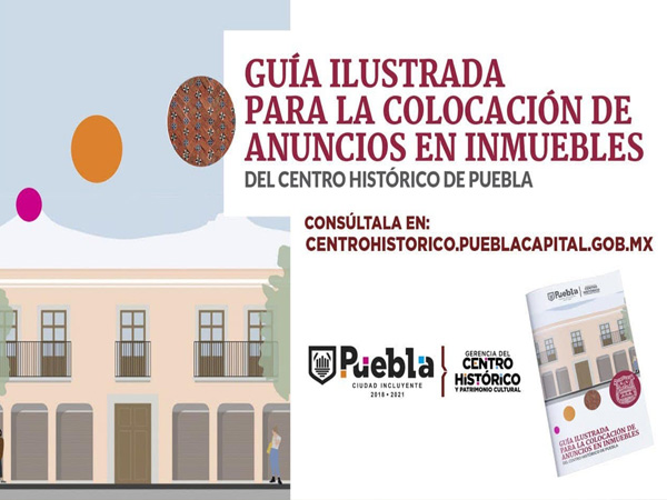 El Ayuntamiento de Puebla, a través del Departamento de Imagen de la Gerencia del Centro Histórico y Patrimonio Cultural, publicó la «Guía Ilustrada para la Colocación de Anuncios en Inmuebles del Centro Histórico», la cual muestra ejemplos para la correcta colocación de anuncios dentro del corazón de nuestra ciudad.