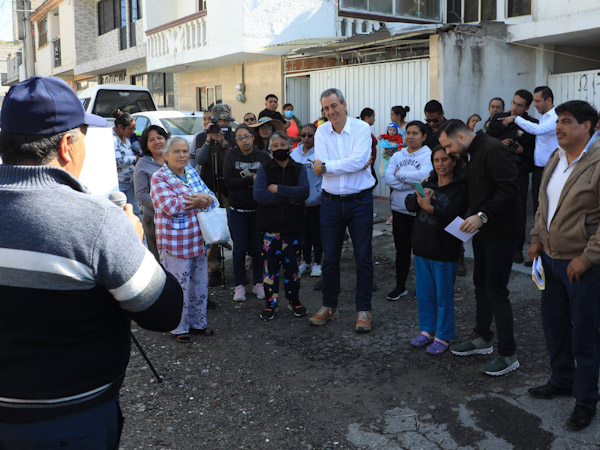 y vecinos en la Junta Auxiliar de San Pablo Xochimehuacán, acompañado por el secretario de Movilidad e Infraestructura, David Aysa de Salazar, afirmó que su administración atenderá todas estas problemáticas que representan