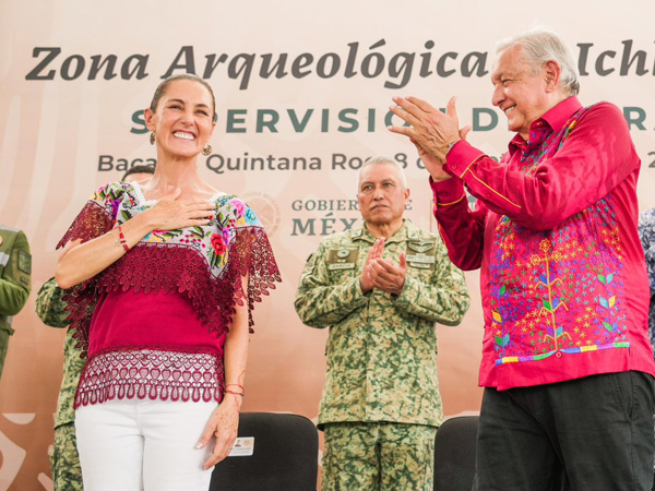 En la supervisión de obra de la zona arqueológica Ichkabal, la Presidenta electa, celebró lo logrado por el Presidente Andrés Manuel López Obrador, a quien describió como uno de los mejores Presidentes de México, quien forjó una hermandad con el pueblo de México.