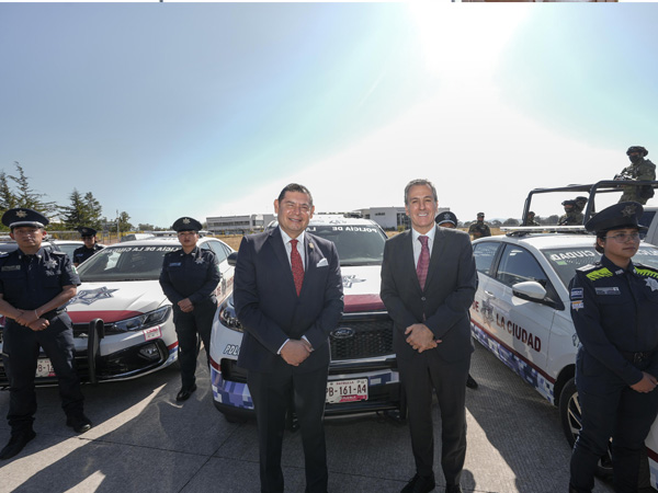 Los vehículos fueron presentados por el titular de la SSC, Fernando Rosales Solís, quien expuso a las autoridades del estado y del municipio la funcionalidad de las patrullas.