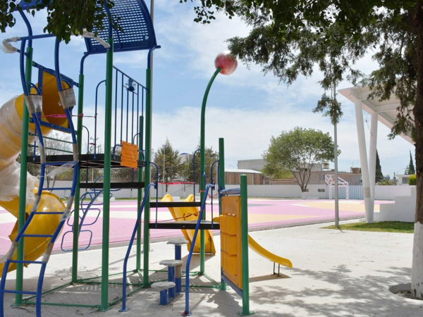 – Instalación de techumbres metálicas, áreas de convivencia y una zona de recreación infantil
