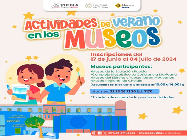 La información completa y la cartelera de junio con más de 200 actividades se puede consultar en las redes sociales: @museospuebla (Facebook e Instagram), @PueblaMuseos (X, antes Twitter) y en el sitio web: sc.puebla.gob.mx
