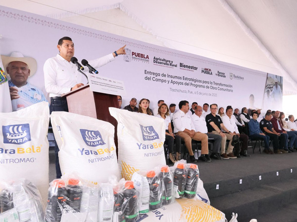 y la mejor forma de hacerlo es en comunidad. En este sentido, enfatizó que el campo poblano es una prioridad, por ello de manera simultánea en Teotlalco y Huejotzingo se otorgaron fertilizantes para lograr de esta manera la soberanía alimentaria.