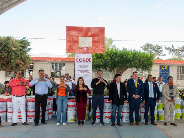 Ahí realizó la entrega de pintura e impermeabilizantes como parte del programa de mejoramiento de infraestructura educativa.