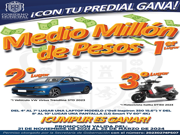 serán acreedores a un boleto para participar en la rifa «Con tu predial gana»