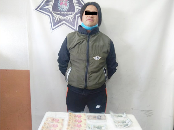 Elementos de Seguridad Pública y Tránsito Municipal de Tepeaca detuvo a un hombre de 37 años de edad por el delito de uso de moneda falsa, quien se encontraba comprando artículos en el tianguis de los viernes con billetes falsos, por lo que fue puesto a disposición de la Fiscalía General de la República.