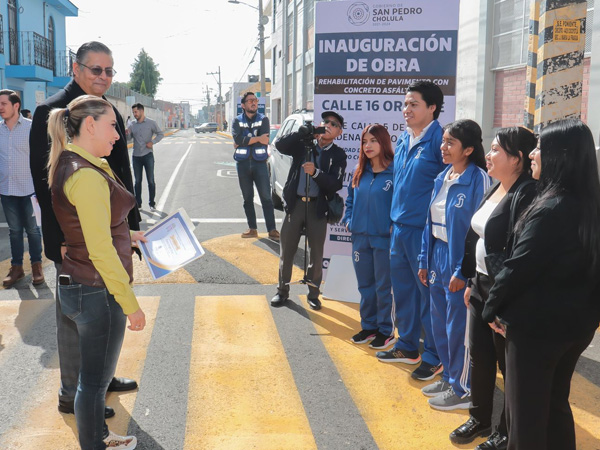 Esta obra consistió en la rehabilitación de pavimento con concreto asfáltico y la renovación de la red de agua potable de la calle 16 Oriente; la Secretaría de Infraestructura y Servicios Generales aportó 1 millón 419 mil 696 pesos, mientras que el Sistema Operador de Agua Potable y Alcantarillado de San Pedro Cholula (SOSAPACH) destinó 702 mil 755 pesos, sumando en total 2 millones 122 mil 451 pesos.