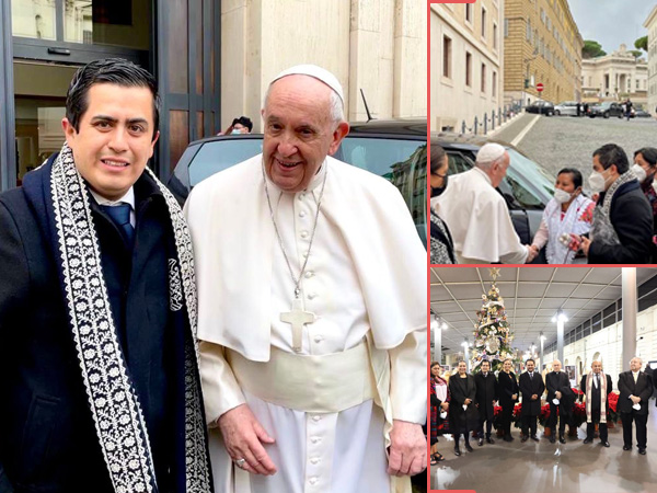 El Papa Francisco recibió a una comitiva de artesanos, en compañía de Lorenzo Rivera, presidente municipal de Chignahuapan y autoridades del