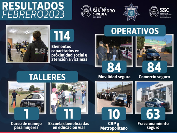 Asimismo, durante el mismo mes se atendieron mil 255 llamadas de emergencia, y se le brindó una atención integral a 47 personas víctimas de algún delito. Aunado a ello y a fin de mejorar la atención ciudadana, 114 elementos de la SSC Cholula recibieron capacitación en “Proximidad Social, Lenguaje Corporal y Atención a Víctimas”.