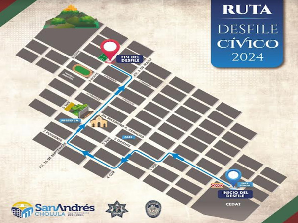 En tanto, respecto al Desfile Cívico del 16 de septiembre, se informa que los contingentes comenzarán su trayecto a las 9:00 horas sobre Avenida Maximino Ávila Camacho, a la altura del Centro Escolar Doctor Alfredo Toxqui Fernández de Lara, posteriormente doblarán a la izquierda sobre la calle 6 Sur y darán vuelta a la derecha sobre la 3 Oriente hasta 4 Sur, donde girarán a la izquierda hasta llegar a la 7 Oriente y en 16 de septiembre girarán a la derecha hasta el cruce de Avenida 5 de mayo y 8 poniente, para finalizar el recorrido en la 3 Norte.