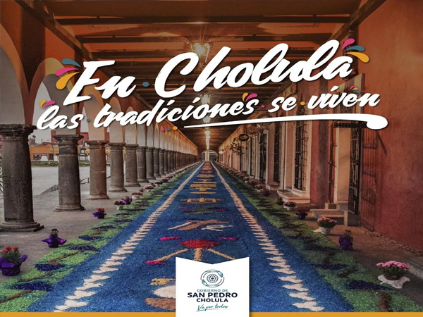 “Durante el desarrollo de Semana Santa 2022, en San Pedro Cholula destaca la Magna Exposición de Alfombras, el regreso de una de las