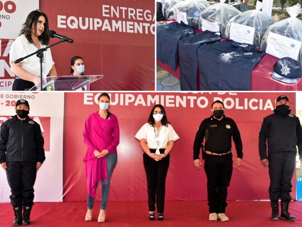 Se entregaron 350 camisolas, 350 pantalones, 175 chamarras, 175 gorras, 279 pares de botas, 50 candados de mano y 116 bastones PR-24, provenientes el programa FORTASEG 2020.