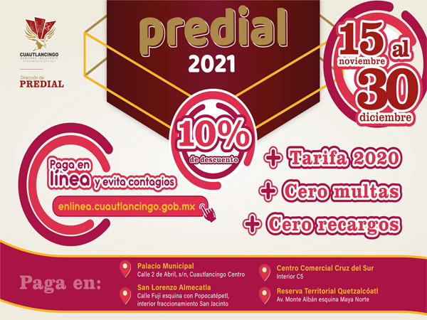 Con el objetivo de estimular la participación de la ciudadanía y que puedan obtener beneficios, la Presidenta Municipal, Lupita Daniel Hernández, dio a conocer que han iniciado con la campaña de recaudación de impuesto predial, así como del servicio de recolección de basura, con el descuento del 10% en su pago 2021 y obtener el beneficio de “Cero Multas y Cero Recargos”, además de que quienes cumplan con el mismo, podrán aprovechar la tarifa 2020.