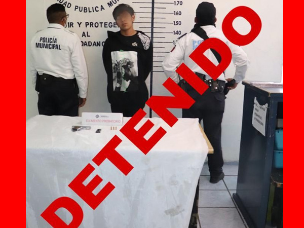 detuvieron en la calle 5 Norte, entre 2 y 4 Poniente, a César A. de 19 años de edad por el delito de