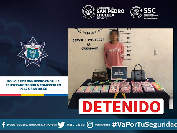 elementos de la Secretaría de Seguridad Ciudadana de San Pedro Cholula, (SSC Cholula) aseguraron a Rafael «N», de 25 años de edad,