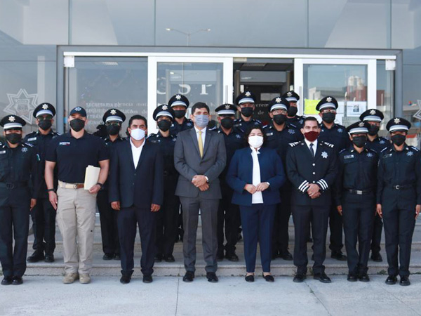 Cumpliendo la estrategia de contar con elementos policiacos capacitados y comprometidos con la seguridad del municipio, la presidenta Karina Pérez Popoca y el Secretario de Seguridad Pública y Tránsito Municipal (SSPTM), Oscar Hugo Morales González, encabezaron la ceremonia de graduación de 14 nuevos elementos que se suman a las filas de la corporación sanandreseña.