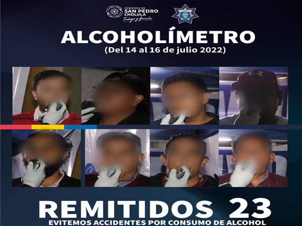 San Pedro Cholula, Pue.- Como resultado del Operativo Alcoholímetro, implementado cada fin de semana por la Secretaría de Seguridad Ciudadana, 23 personas fueron remitidas al Juzgado Calificador por conducir en segundo o tercer estado de ebriedad.
