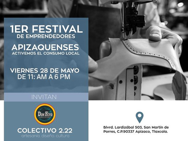 El Colectivo 2.22 y Cerveza Don Feyo han dado un gran paso en favor del emprendedurismo organizando el «1er Festival de Emprendedores Apizaquenses» el cual tendrá lugar en Blvd Lardizábal #503-C en San Martín de Porres, con horario de 11:00am a 5:oo pm.