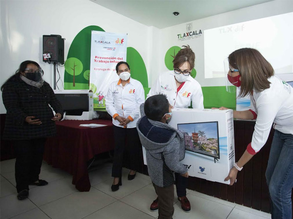 Como parte del evento, la Presidenta Honorífica del DIF Estatal entregó de manera simbólica a infantes pantallas que contribuirán a fortalecer el proceso enseñanza-aprendizaje a través del Programa “Aprende en Casa II” en estudiantes vulnerables.