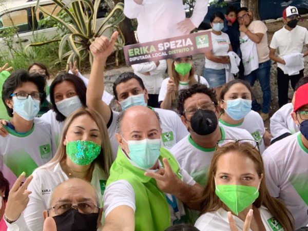 Puebla, Pue.- En su sexto día de campaña a la presidencia municipal de Puebla capital, Capi Ruiz Esparza estuvo acompañado por Erika Spezia y Karla Manchinely, candidatas a diputadas locales.