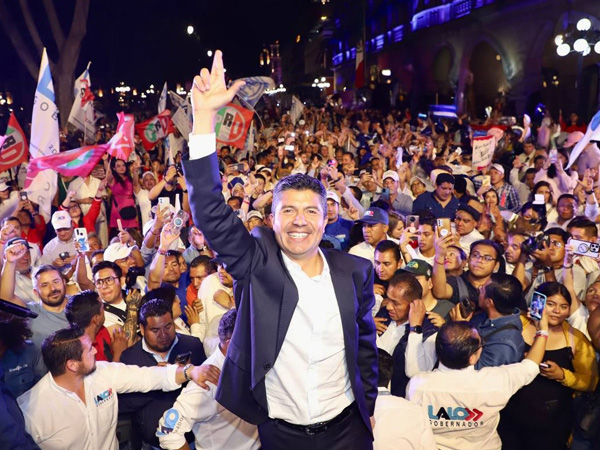 Tras ganar el Debate Puebla 2024 por la Gubernatura, Lalo Rivera -abanderado de la Coalición conformada por el PAN, PRI, PRD y PSI- celebró su victoria en compañía de simpatizantes en el Zócalo de la capital del Estado.