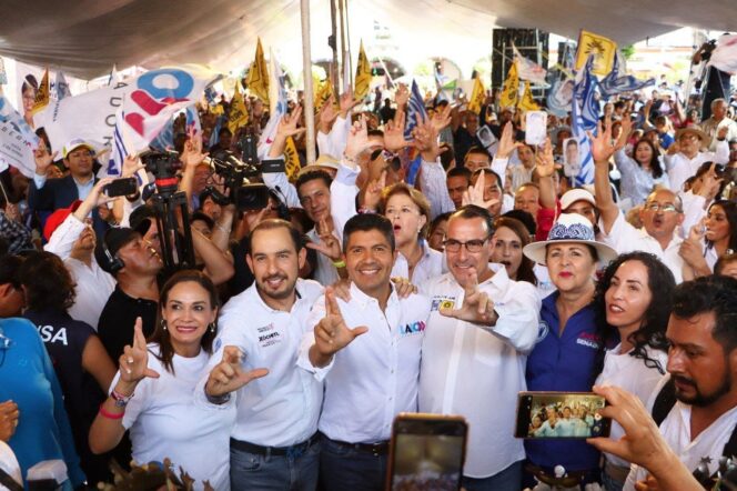 Por su parte, Marko Cortés felicitó a Lalo Rivera por hacer una gran campaña en todo el estado de Puebla, «a quien inició 15 puntos abajo, ya