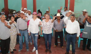 El presidente del Comité Directivo Estatal (CDE) del PRI, diputado Néstor Camarillo Medina y la secretaria General, Delfina Pozos Vergara, en compañía de liderazgos…