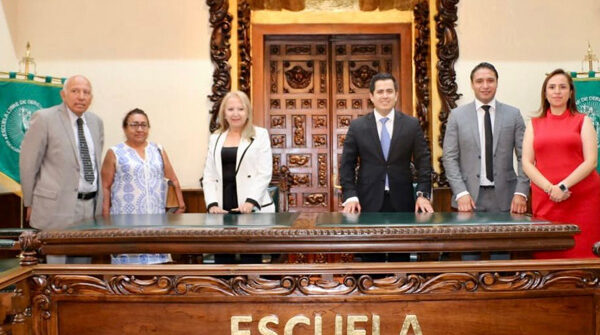 El Presidente Municipal, Lorenzo Rivera Nava, acompañado del Secretario General, Ernesto Cortés, la Síndico Municipal, Elizabeth Olmedo y el…