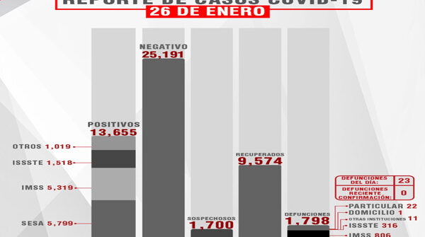 De acuerdo con el reporte del 26 de enero, la Secretaría de Salud del Estado (SESA) confirmó 53 personas…