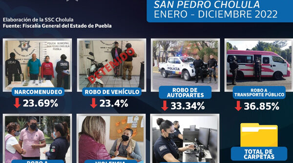 San Pedro Cholula, Pue.- San Pedro Cholula, Pue.- Como resultado de las estrategias implementadas en materia de seguridad, en…