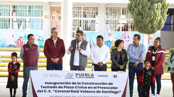 El mandatario estatal inauguró en San Miguel Canoa la construcción de los techados de las plazas cívicas en la…