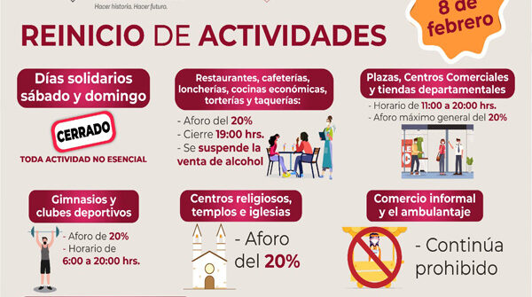 Para dar cumplimiento al nuevo Decreto del Gobierno del Estado, que establece las medidas para el reinicio de actividades…