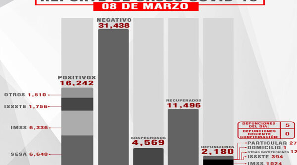 De acuerdo con el reporte del 08 de marzo, la Secretaría de Salud del Estado (SESA) confirmó 15 personas…