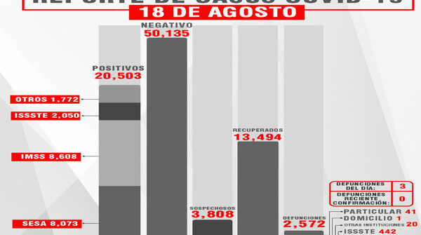 De acuerdo con el reporte del 18 de julio, la Secretaría de Salud del Estado (SESA) dio a conocer…