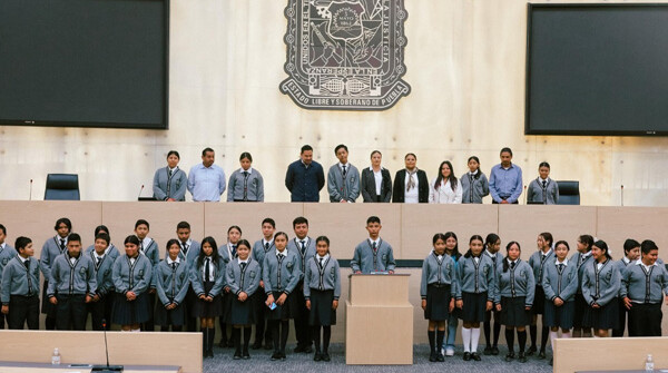 El diputado Andrés Villegas Mendoza recibió en el Congreso del Estado de Puebla a alumnas y alumnos de la…