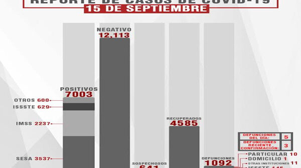 De acuerdo con el reporte del 15 de septiembre, la Secretaría de Salud del Estado (SESA) confirmó 66 personas…