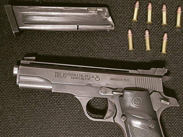 Posteriormente, personal de la Dirección de Seguridad, Protección Ciudadana y Movilidad de Tlaxcala, realizó una inspección en el domicilio de las víctimas, en donde se encontraron una barreta metálica utilizada para forzar la puerta y un arma de fuego tipo pistola calibre 22, marca TREJO, sin número de serie visible, con un cargador abastecido con 7 cartuchos útiles.