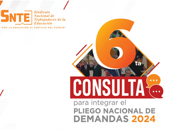 Con fundamento en el Artículo 10 del Estatuto, en el que se establece el objeto social y fines del SNTE, que resumimos en la defensa de la educación pública como un derecho de las y los mexicanos, así como, la reivindicación de los derechos laborales, salariales, profesionales y sociales de los agremiados; con base en la titularidad y la representación legítima y legal de los Trabajadores de la Educación, convocamos a la 6ta Consulta Nacional para la integración del Pliego Nacional de Demandas 2024 que nuestro sindicato presentará, como cada año, al Presidente de la República por conducto de la titular de la Secretaría de Educación Pública.