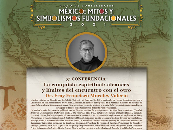 Como parte del ciclo de conferencias México: Mitos y simbolismos fundacionales, organizado por la Universidad de las Américas Puebla, Fray Francisco Morales Valerio director del Archivo Histórico Francisano del Santo Evangelio de México impartió la conferencia La conquista espiritual: alcances y límites del encuentro con el otro, donde explicó la complejidad de este encuentro y el papel trascendental que jugaron los misioneros en el proceso de conquista.