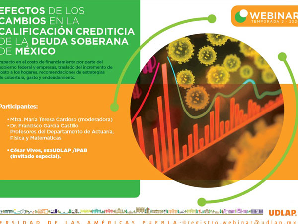 Derivado de la degradación de la calificación crediticia soberana de México las empresas y hogares tendrán un impacto importante en las tasas de interés, un alza de la deuda externa y una mayor tasa de inflación, expuso el Dr. Francisco García en el webinar titulado “Efectos de los cambios en la calificación crediticia de la deuda soberana de México”, efectuado por la Universidad de las Américas Puebla.
