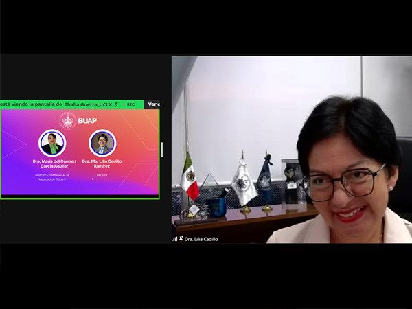 la Rectora María Lilia Cedillo Ramírez al inaugurar de forma virtual el curso No+Violencia